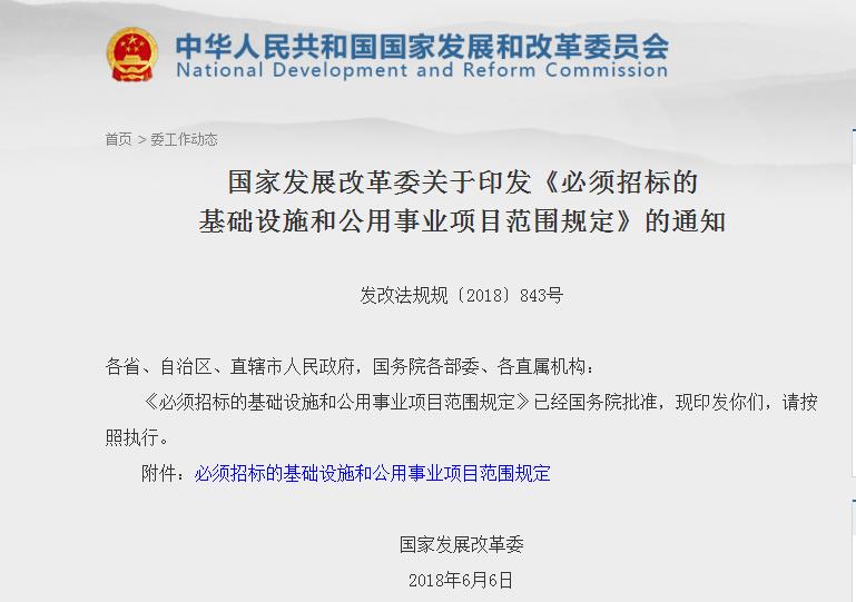 必須招標的基礎設施和公用事業項目范圍規定