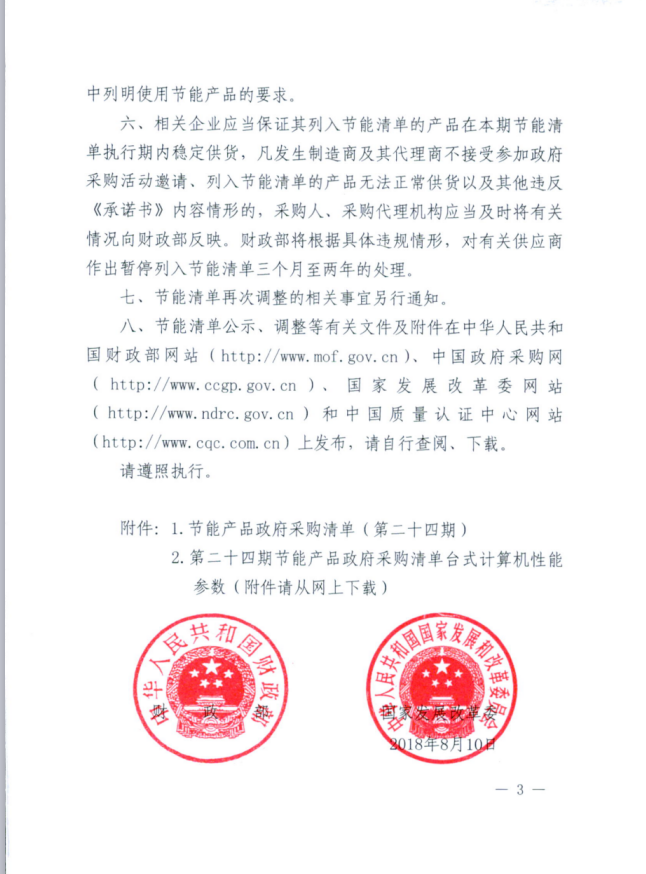 財政部 國家發展改革委關于調整公布第二十四期節能產品政府采購清單的通知