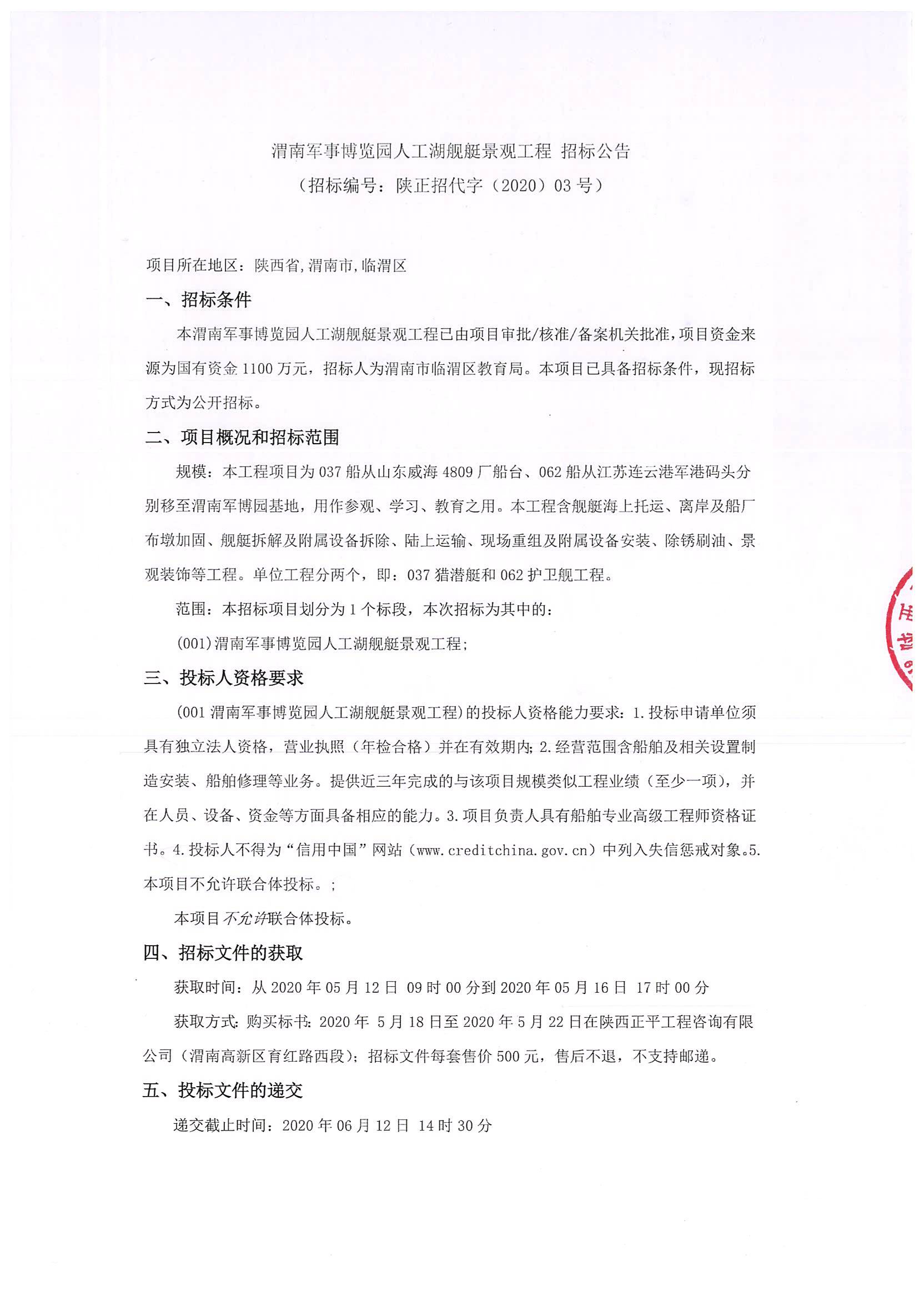 渭南軍事博覽園人工湖艦艇景觀(guān)工程 招標(biāo)公告